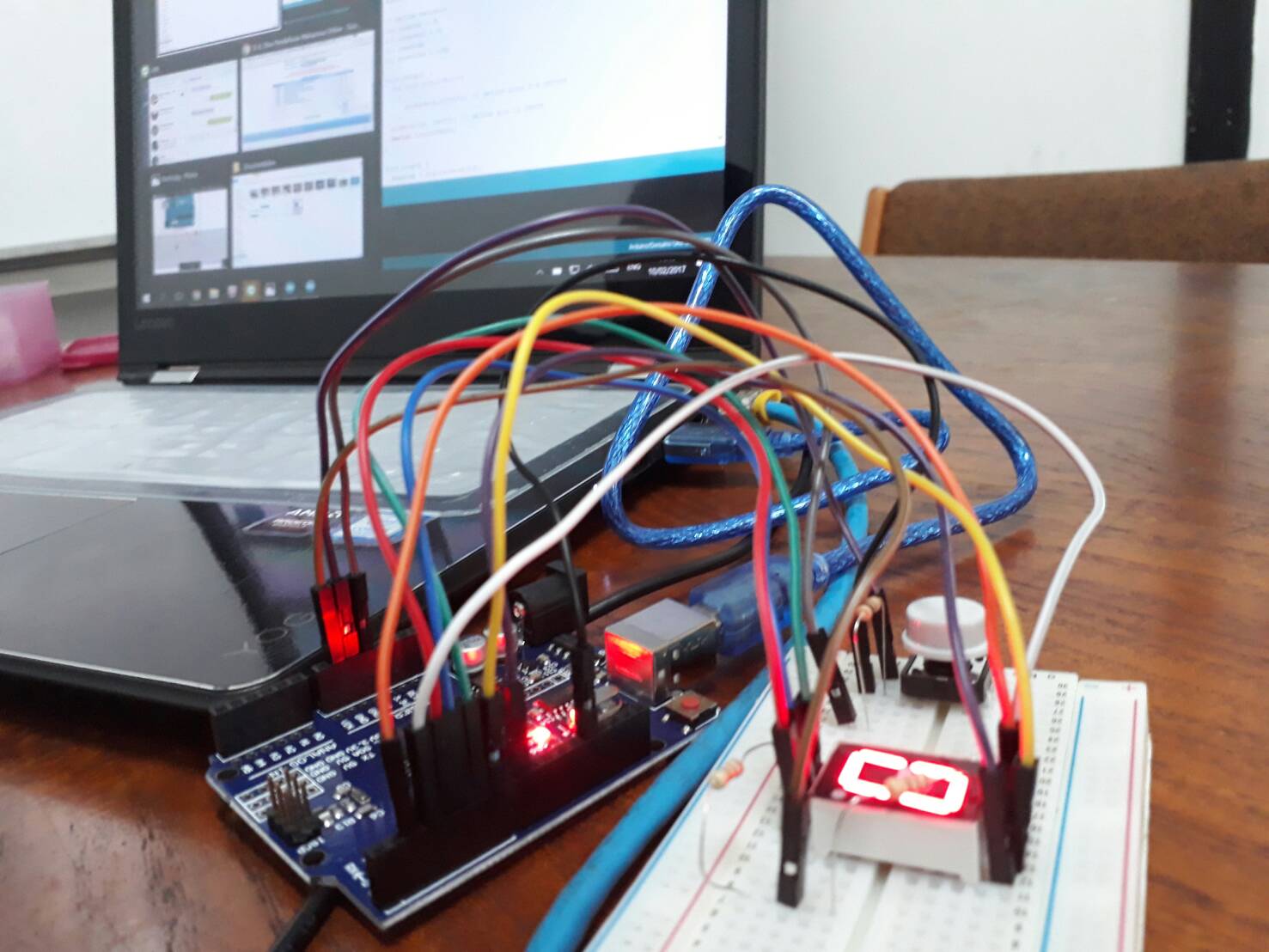 Hubungkan Arduino yang telah dirangkai dengan komputer menggunakan kabel USB, kemudian jalankan source code yang telah dibuat. LED yang tertanam pada board Arduino akan berkedip jika kode yang kita buat berhasil dieksekusi oleh Arduino.